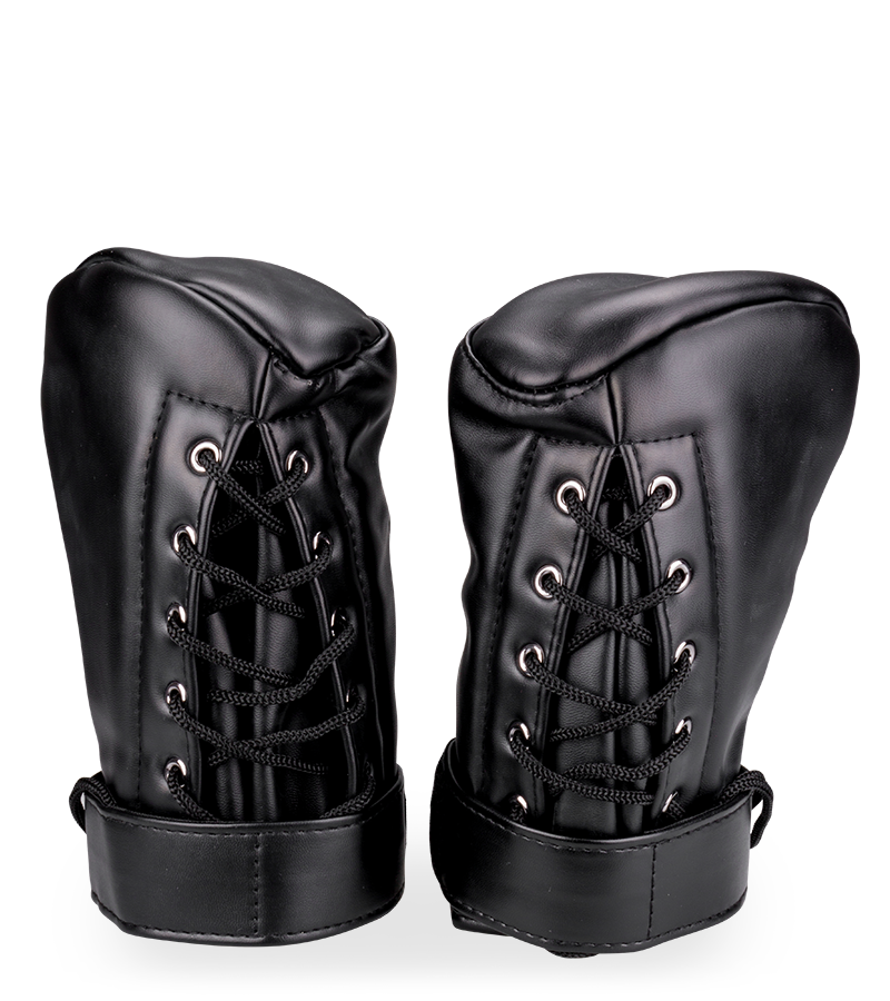 These gloves are made from high-quality faux leather. Thanks to the thick padding, they'll protect your hands when walking on all fours. They can also be used to restrain your hands during bondage play. They fit all hand sizes thanks to the velcro fasteners and lacing.