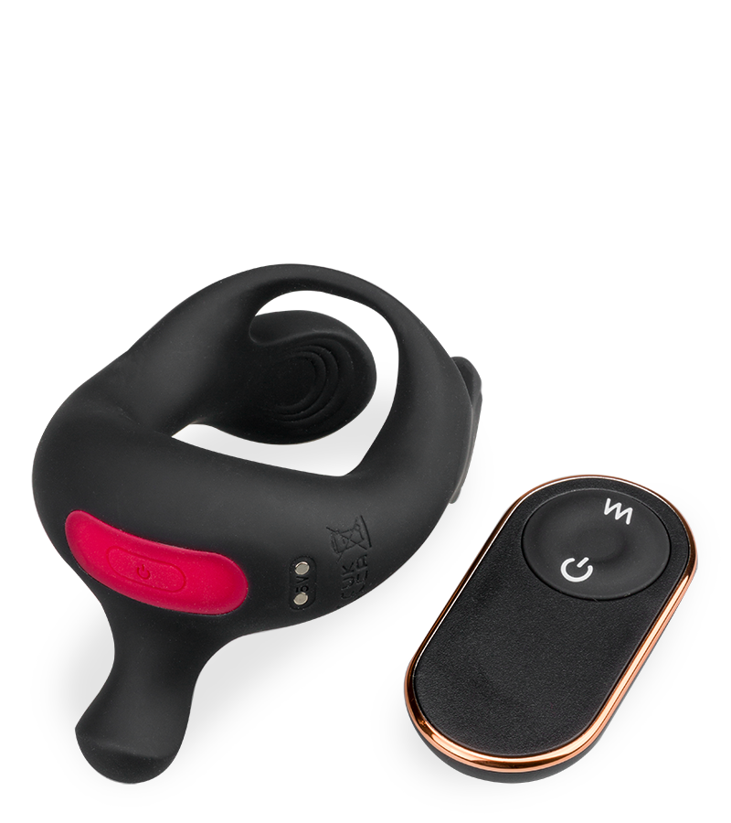 This silicone cock ring is perfect for couples seeking new sensations. Place this stretchy ring behind your penis and testicles to increase blood flow to the area to boost your erection. The two arms will naturally fold around the testicles while a small nub will position itself on your partner's clitoris. Switch on one of the 9 vibration modes to stimulate your most intimate areas, You can control this toy by pressing the buttons on the toy itself or by using the wireless remote control.