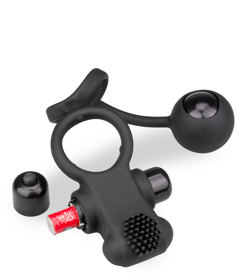 Couples will love this vibrating double cock ring, as it offers triple stimulation: for the penis, clitoris, and anus. The first flexible cock ring has a 1.25-inch diameter and will wrap around his penis, while another, slightly tighter ring (also flexible), with a 1.00-inch diameter fits around the testicles. Both rings are linked to a powerful vibrating bullet, enhanced with soft pleasure nubs to titillate her clitoris. At the other end of this penis ring, you'll find an anal bead with a 1.25-inch diameter designed to stimulate your anal walls. This ring is made of flexible silicone, so it will adapt to any penis size. Choose from 10 different amazing modes!
