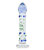 The Poetry glass dildo is 6.50 inches long with an insertable length of 6.00 inches. It has a 1.25-inch diameter at its thickest point.