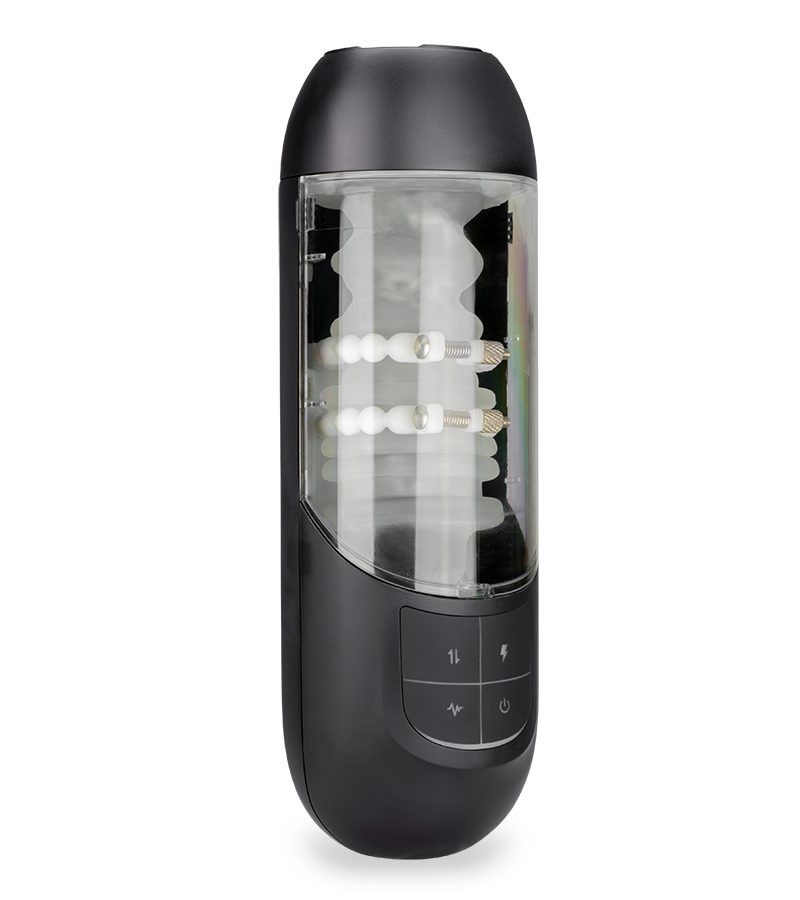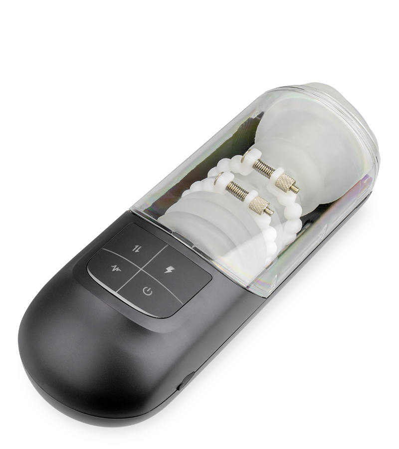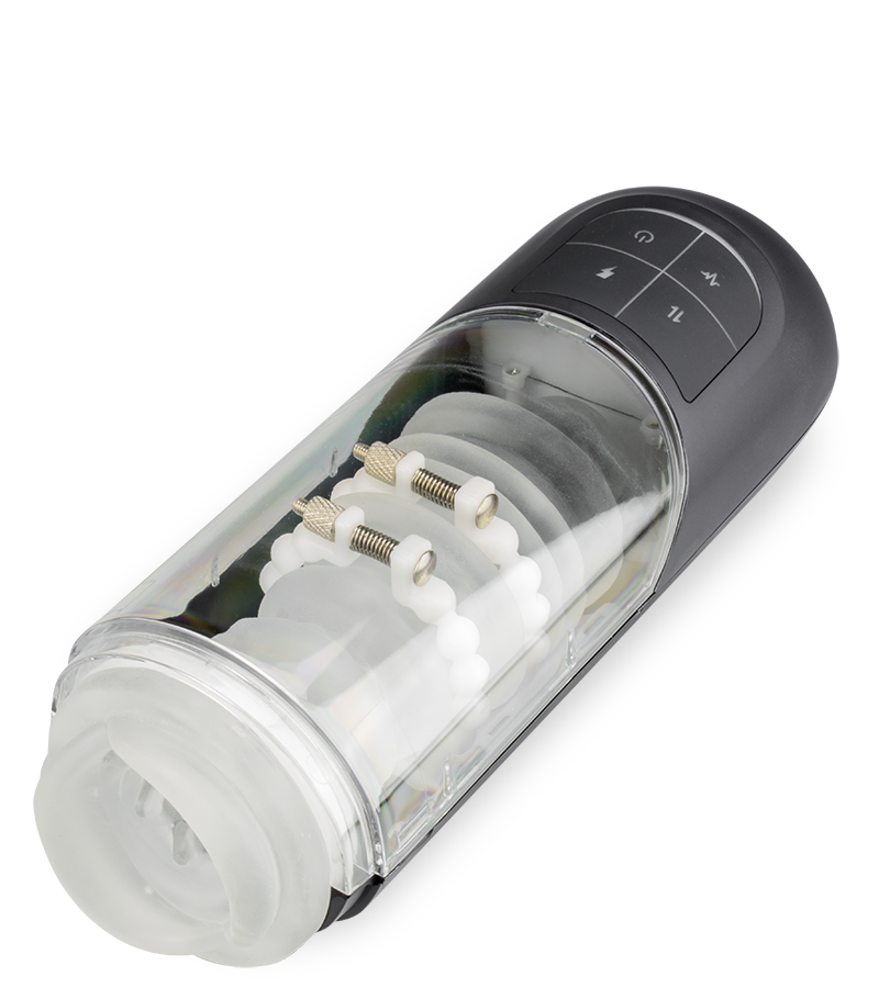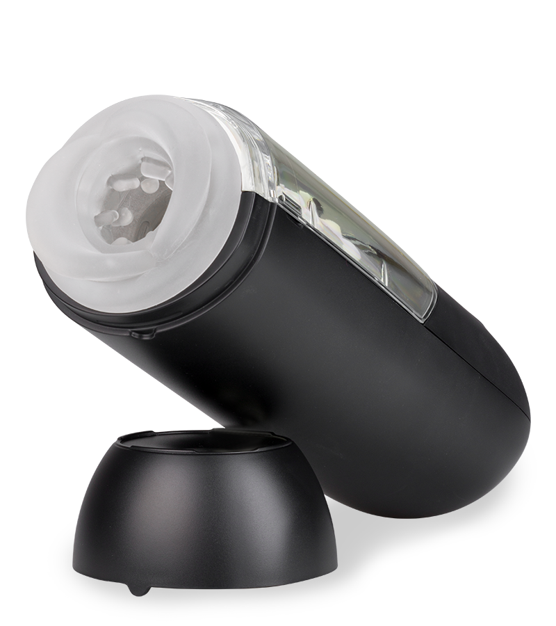 This discreet, elegant masturbator is made of ABS and TPE. It has a soft, welcoming textured sleeve that will stimulate the entire length of your member while the masturbator thrusts back and forth and vibrates. This male sex toy will take care of you effortlessly, delivering intense orgasms at the rhythm of your choosing. There are 14 thrusting modes and 10 vibration modes to choose from.