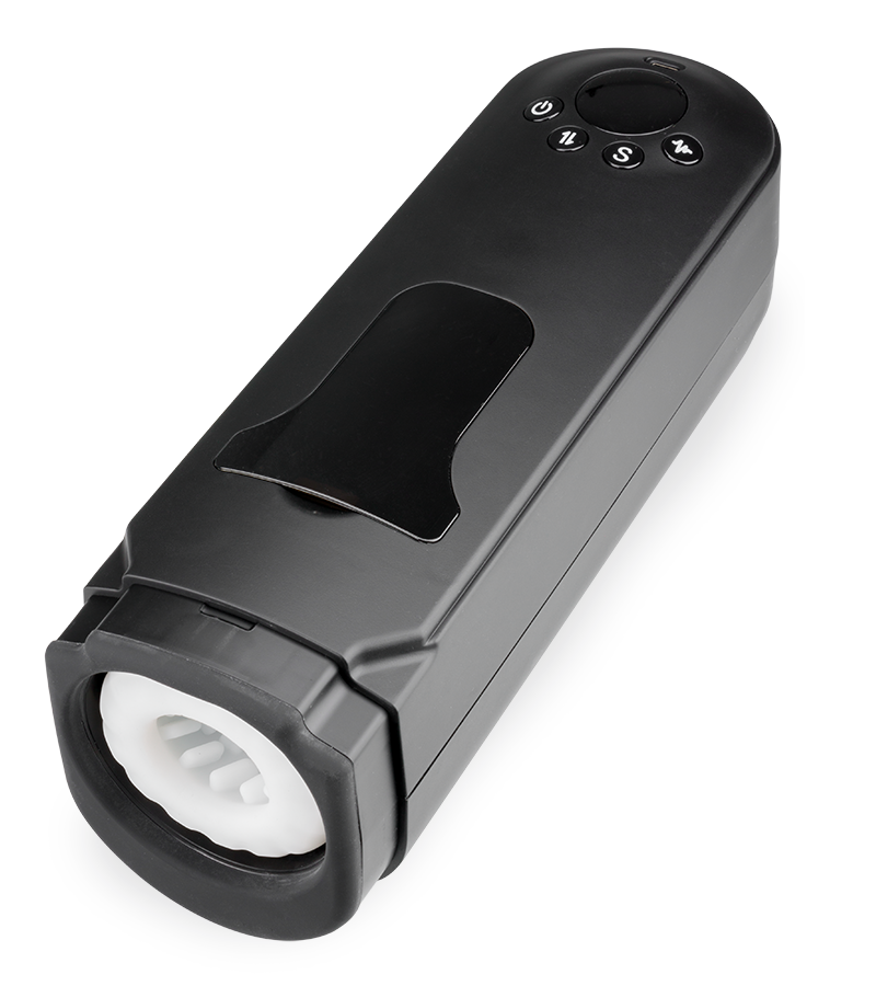 The Alderico masturbator measures 11.50 inches in length and 3.75 inches in diameter. The sleeve has an internal length of 4.00 inches and an internal diameter of 1.25 inches. A USB cable is included to charge its battery.