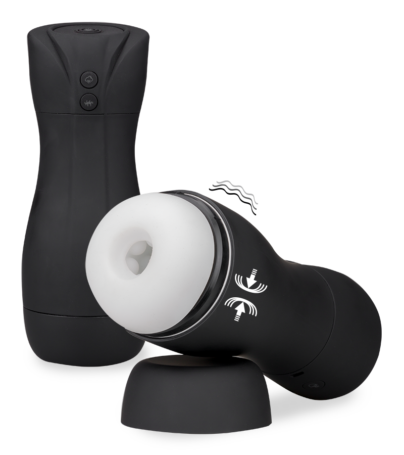 This user-friendly black masturbator is the perfect toy for all of your solo sessions. The silicone sleeve has an ultra-stimulating texture to massage your member with intensity. Switch on the airbag function to experience deep suction for even more pleasure. Just lie back, close your eyes, and enjoy. This masturbator has an internal diameter of 1.75 inches and an internal length of 6.25 inches. To make every session different from the last, this masturbator has 10 different vibration modes. Press the button on the back for more intense vibrations and suction!
