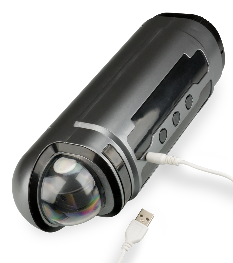 The Frenzy masturbator measures 11.25 inches in total length and 3.50 inches in diameter. The internal length of the sleeve is 4.00 inches, with an internal diameter of 1.25 inches. A USB cable is included for easy charging.
