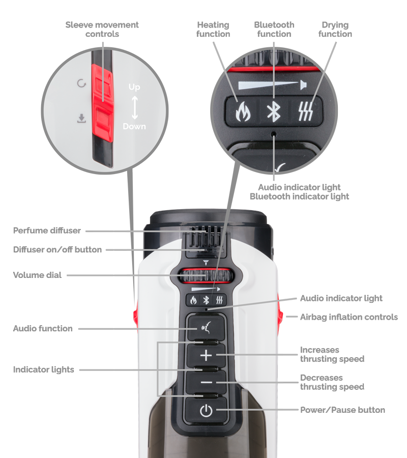 10. After each use and after closing the masturbator, turn on the drying function by pressing the button to the right of the Bluetooth button.