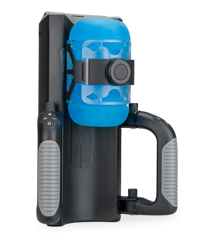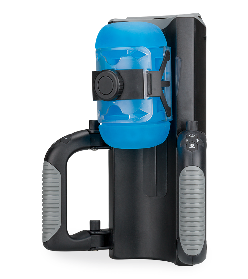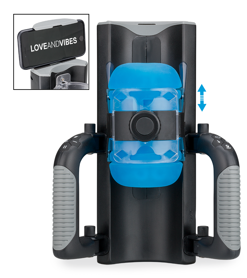 This high-end masturbator is designed to satisfy our most demanding customers. This toy is ultra-comfortable to use, thanks to its handles and built-in phone holder. The TPE sleeve is soft to the touch and features a highly stimulating internal texture that will massage your penis. For precise control, you have total command over the movements: control the span of the thrusts (from 0.75 to 4.75 inches across 6 modes) and control the speed of the thrusts (10 speeds). That way, you can lie back and focus on the pleasure. If you'd like, you can even insert the Pocket pussy of your choice for new sensations!