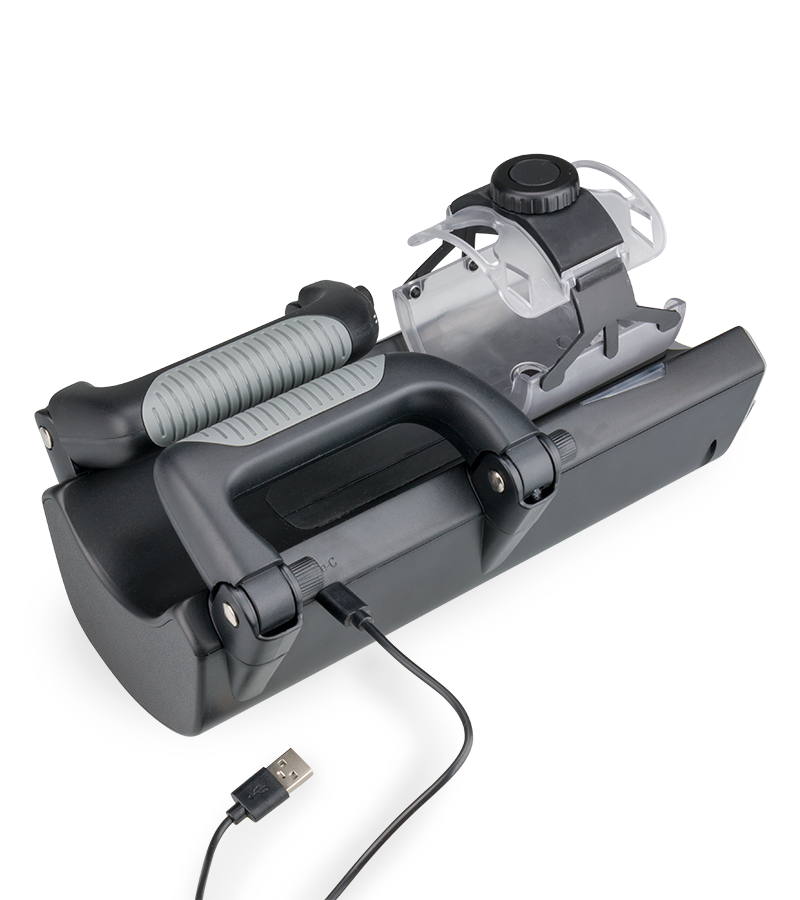 The Majestic Pro masturbator measures 10.0 inches in length (without the phone holder) and 7.50 inches in width (from handle to handle). The sleeve is open on both sides and measures 4.75 inches in length. The internal diameter of the sleeve is 1.50 inches. A USB cable is included to recharge the device's battery.
