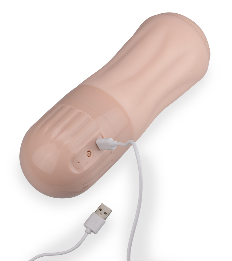 The masturbator is 10.25 inches long with a diameter of 3.25 inches. The vaginal orifice has an internal depth of 6.00 inches. A USB cable is included to charge the toy's battery.