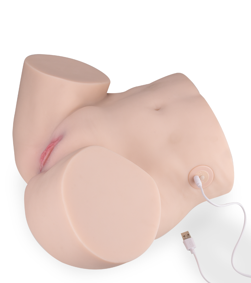 This toy is 11.75 inches in length and 16.50 inches wide. The waist size is 24.75 inches. The vagina is 5.5 inches deep, with an internal diameter of approximately 1.50 inches. A magnetic USB cable is included for easy charging.