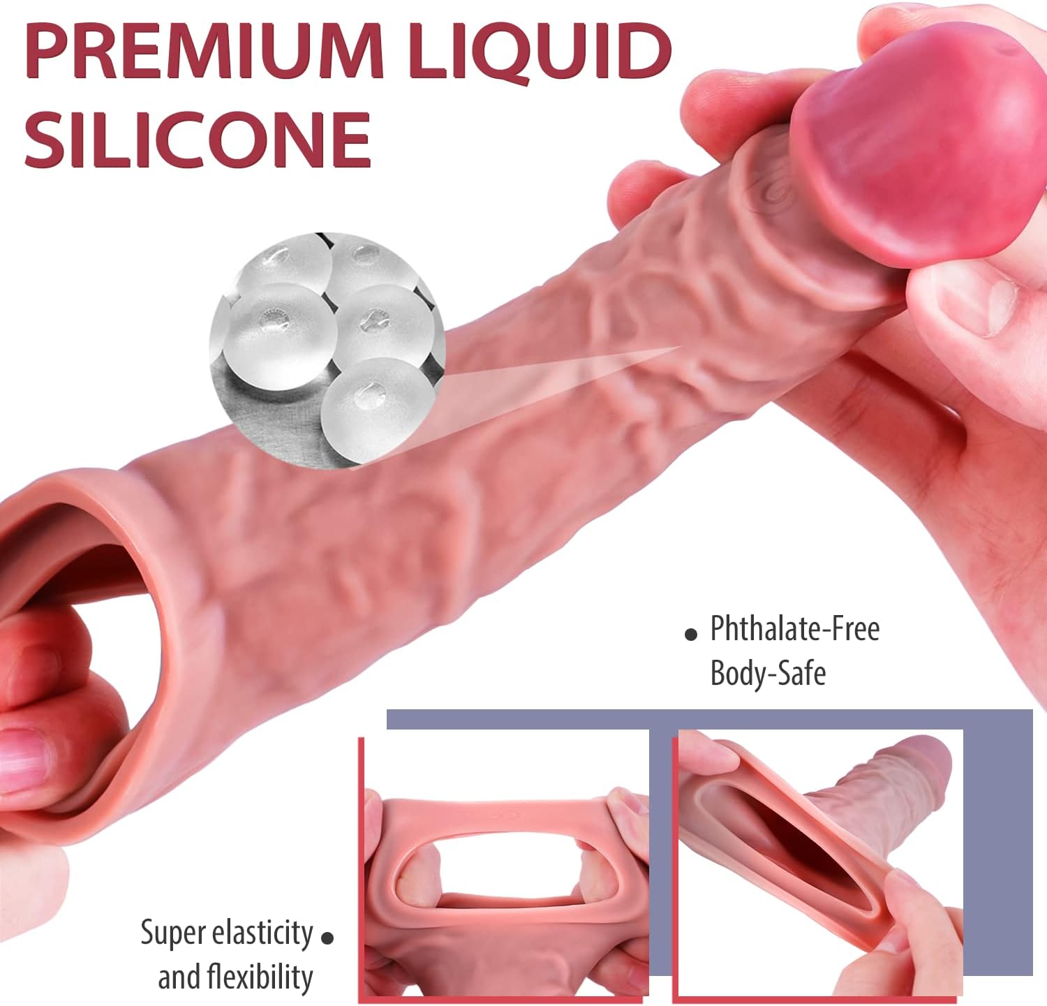 10 Vibration Silicone Vibrating Penis Extender with Ball Stretcher