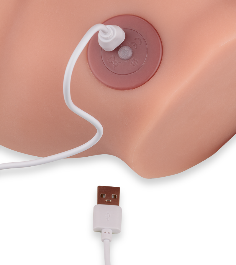 The Carlos butt measures 8.00 inches long by 9.00 inches wide. The penis measures 6.00 inches long by 1.50 inches in diameter. A magnetic USB charging cable is included.