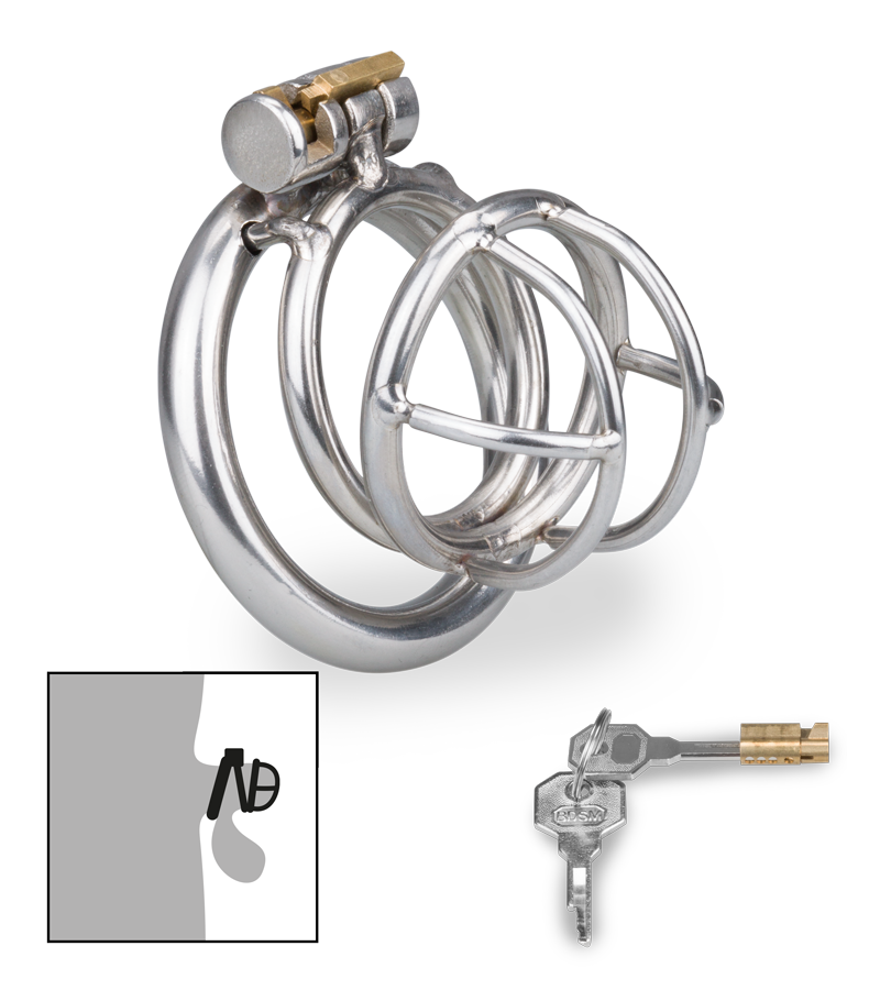 Once this cage is positioned on your penis, it will be impossible for you to give in to your basest impulses. Thanks to its airy design, you can wear it for extended periods of time, making you impotent for however long you'd like. As it has a Magic Lock system (no padlock), it is lighter and more discreet, so you can wear it underneath your clothes without anyone knowing your little secret.