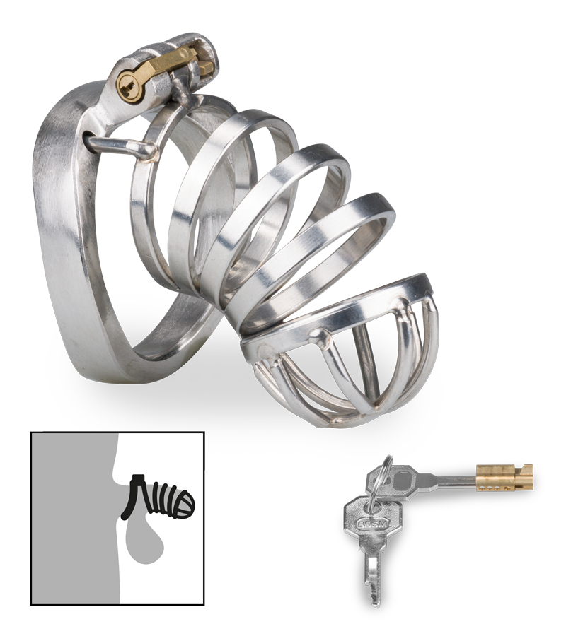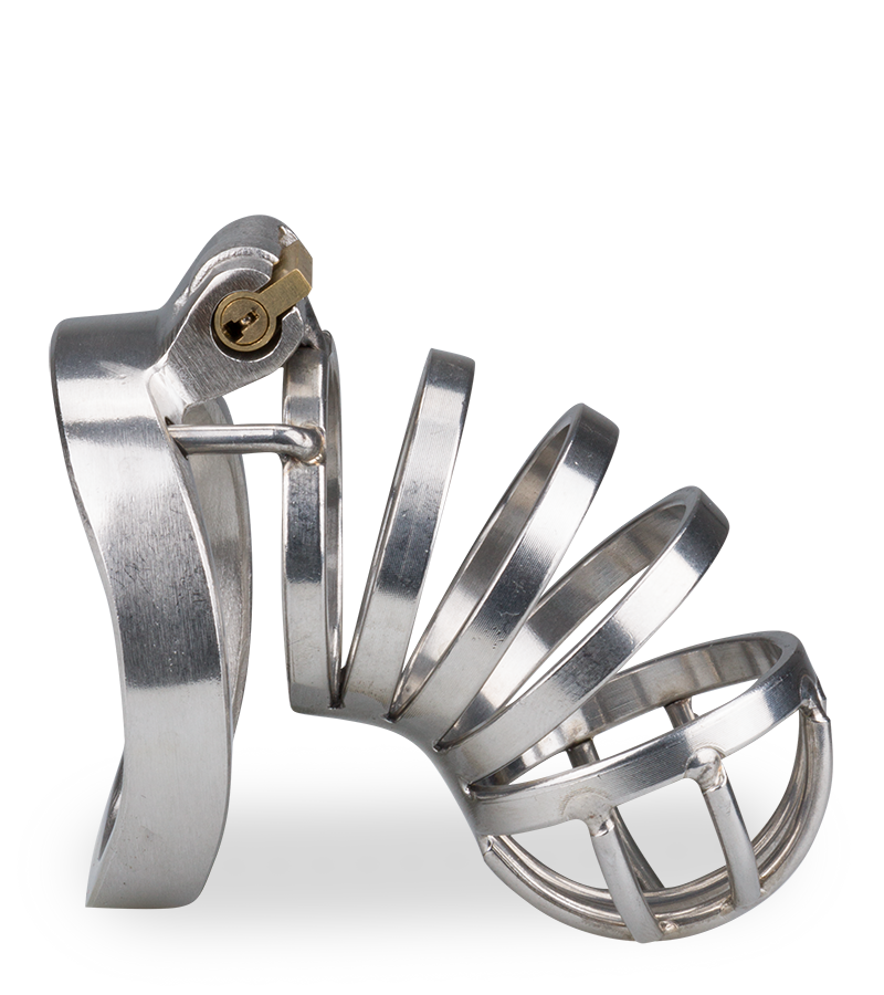 This airy stainless steel cage is perfect for all-day wear. The discreet design features a Magic Lock system. You can even wear it underneath your clothes! The curved shape of the cage prevents full erections, preventing your most primal urges.
