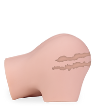 The Eleanor ass masturbator is 7.00 inches long, 8.75 inches wide, and 5.00 inches high. The vagina is 5.00 inches deep and the anus is 4.75 inches deep.