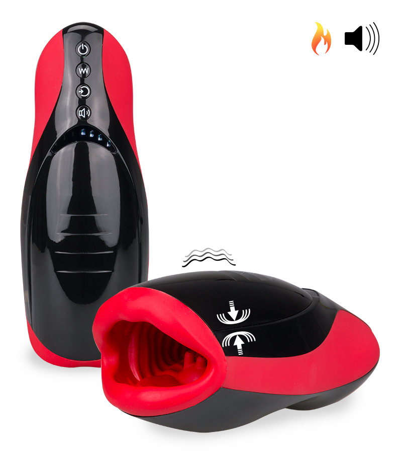 This masturbator perfectly replicates the inside of a mouth. It has many realistic details to give you an experience that feels just like the real thing (lips, tongue, palate, glottis...). This masturbator's different features will help you achieve explosive orgasms. Choose from 8 different vibration modes, 5 sucking modes and 5 different recordings of a woman loudly moaning. This masturbator also has a heating function to make the toy warm, which is automatically activated when the toy is turned on.