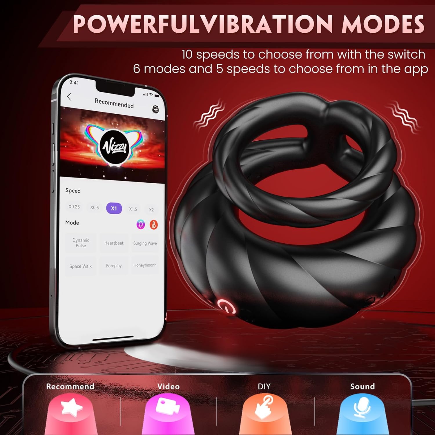 Two rings. Two times the pleasure. The unique ergonomic design not only locks your penis securely but also cradles your scrotum for a snug, perfect fit. Feel the vibrations ripple through you, with a sleek, curvy line that perfectly hugs your body, providing a lasting, powerful experience. It's like having a secret weapon for those intimate nights.