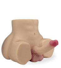 The masturbator measures 13.00 inches in length, 11.50 inches wide and 12.25 inches in height. The anus has a depth of 7.00 inches and has ribbing and pleasure nubs for extra enjoyment. The penis measures 6.00 inches in insertable length and has a diameter of 1.50 inches.